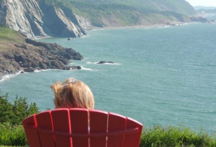 sitting on a sunwashed deck